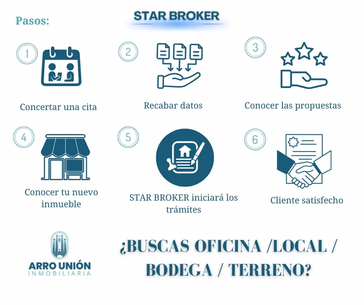 En ARRO UNIÓN INMOBILIARIA ofrecemos asesoría especializada en inmuebles comerciales, incluyendo oficinas, bodegas, terrenos, locales y naves industriales, a través de nuestro servicio personalizado STAR BROKER, que brinda orientación inmobiliaria y legal para apoyar tus proyectos empresariales y comerciales .
